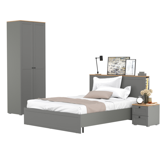 Отзывы о Столплит Двуспальная кровать Остин с ортопедическим основанием с платяным шкафом 13.224 и тумбой прикроватной Крафт золотой/Серый