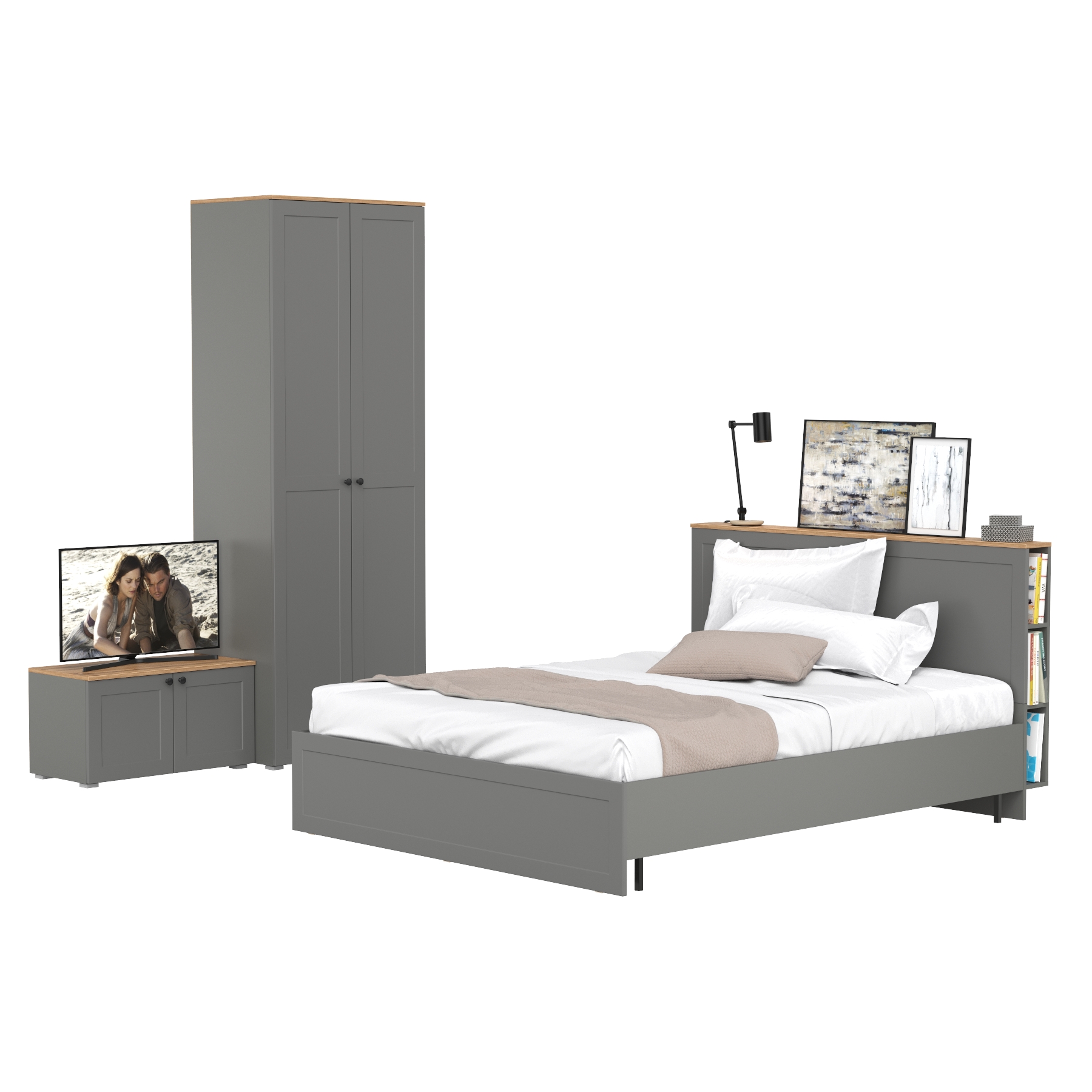 Отзывы о Столплит Кровать двуспальная Остин с ортопедическим основанием с тумбой с дверками и шкафом 13.224 Крафт золотой/Серый