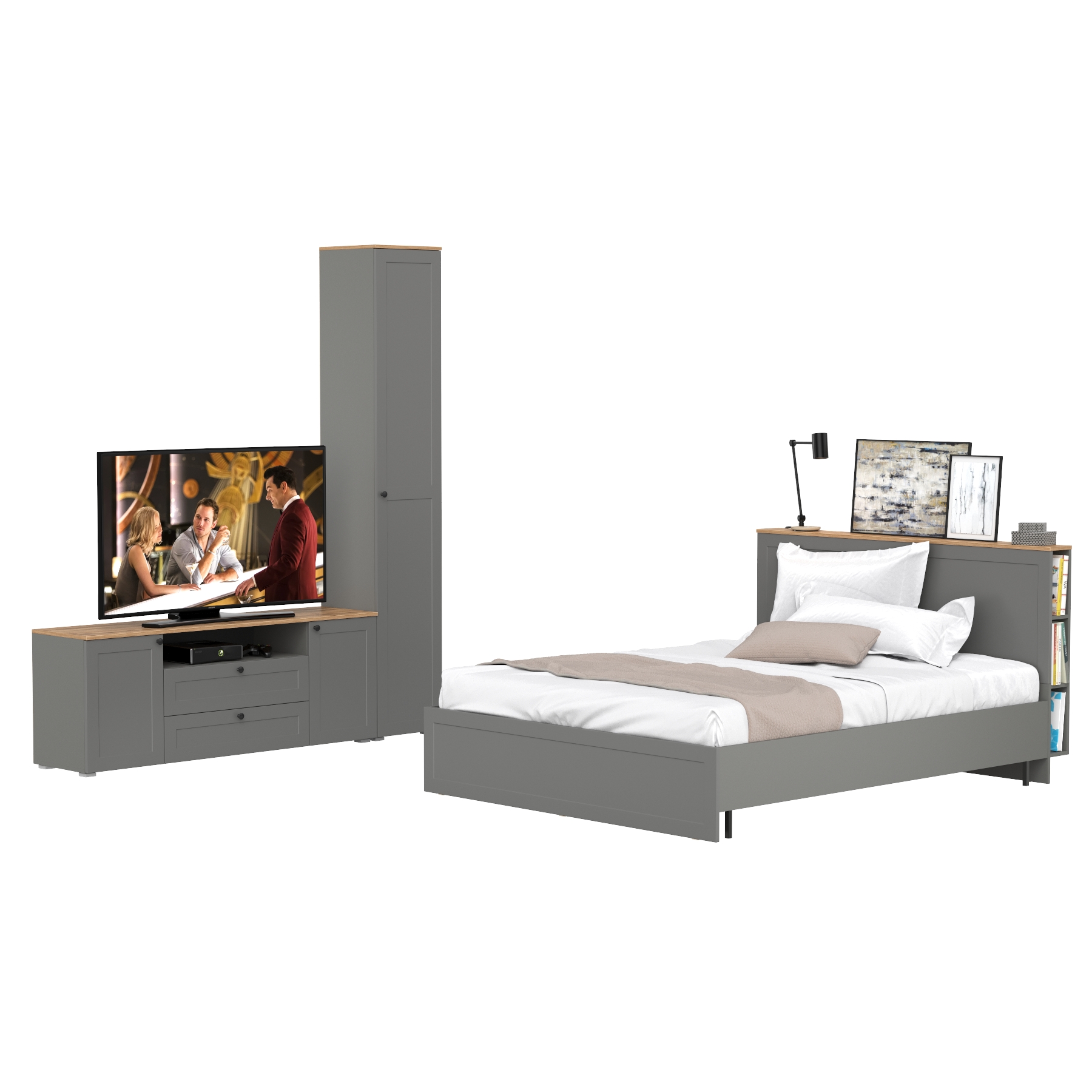 Отзывы о Столплит Кровать Остин со спальным местом 1600х2000 с ортопедическим основанием с пеналом с полками и тумба под ТВ Крафт золотой/Серый