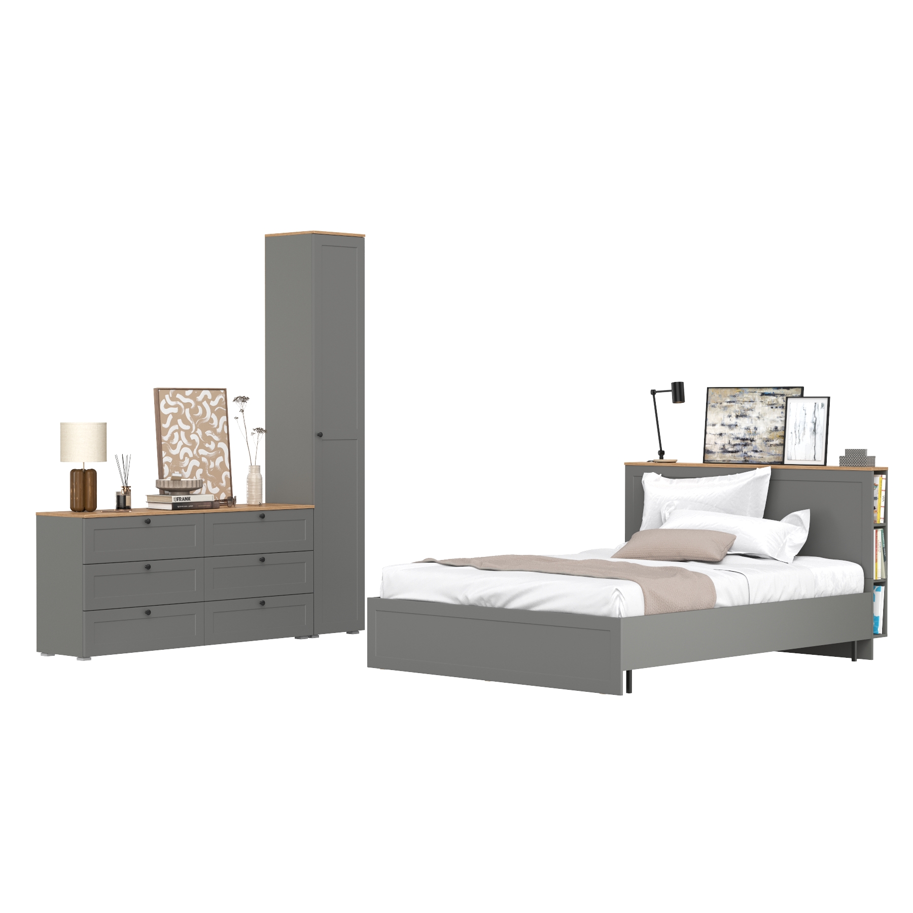 Отзывы о Столплит Комод шесть ящиков Остин с кроватью 1600 с основанием и пеналом с полками Крафт золотой/Серый