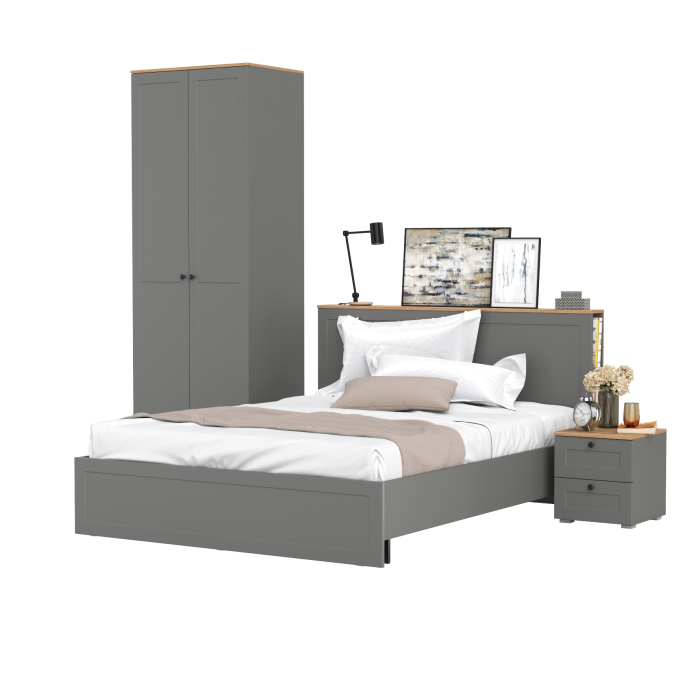 Отзывы о Столплит Шкаф для одежды двухдверный Остин с кроватью с ортопедом и прикроватной тумбочкой Крафт золотой/Серый