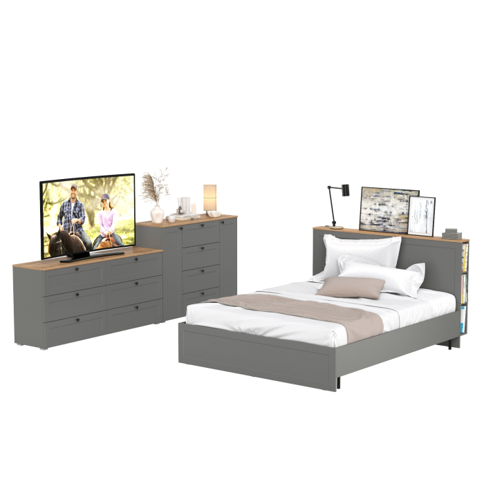 Отзывы о Столплит Спальный гарнитур из двуспальной кровати с основанием и двух комодов Остин 16.240 и 16.221 Крафт золотой/Серый