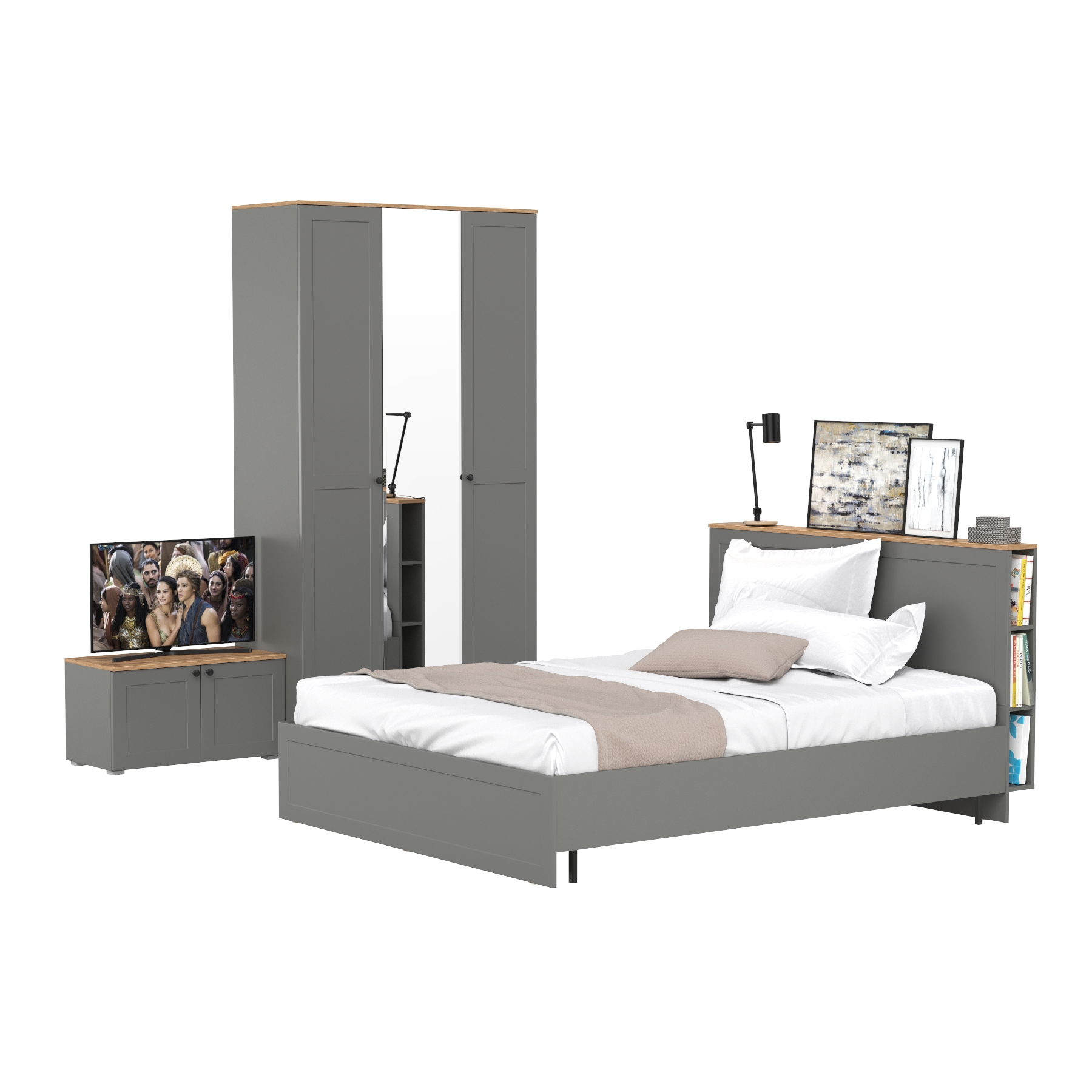 Отзывы о Столплит Спальня из кровати 1600 с ортопедом и шкафа для одежды Остин 13.336.03 и тумбы две дверки Крафт золотой/Серый
