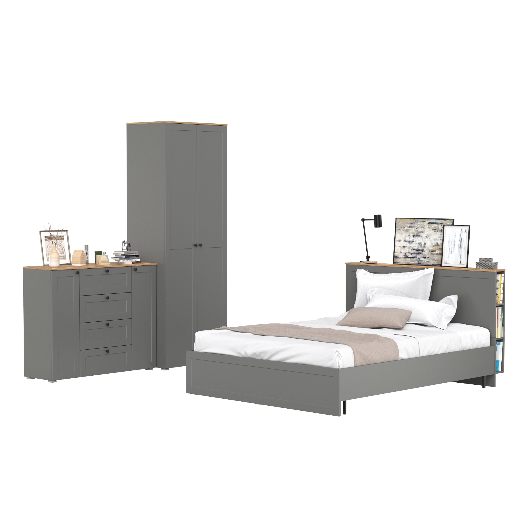 Отзывы о Столплит Спальня Остин из комода-тумбы с кроватью 1600 с основанием и бельевого шкафа 13.224 Крафт золотой/Серый