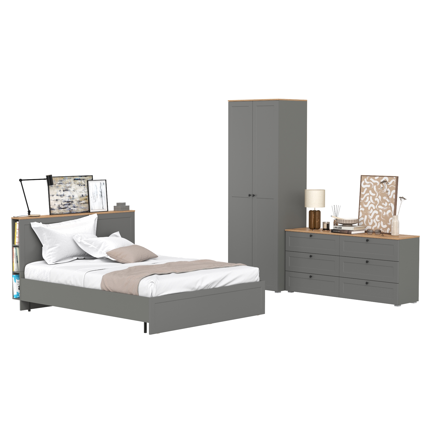 Отзывы о Столплит Мебель для спальни из шкаф-комода для одежды и белья с кроватью 11.53 ортопедом и комода 16.240 Крафт золотой/Серый