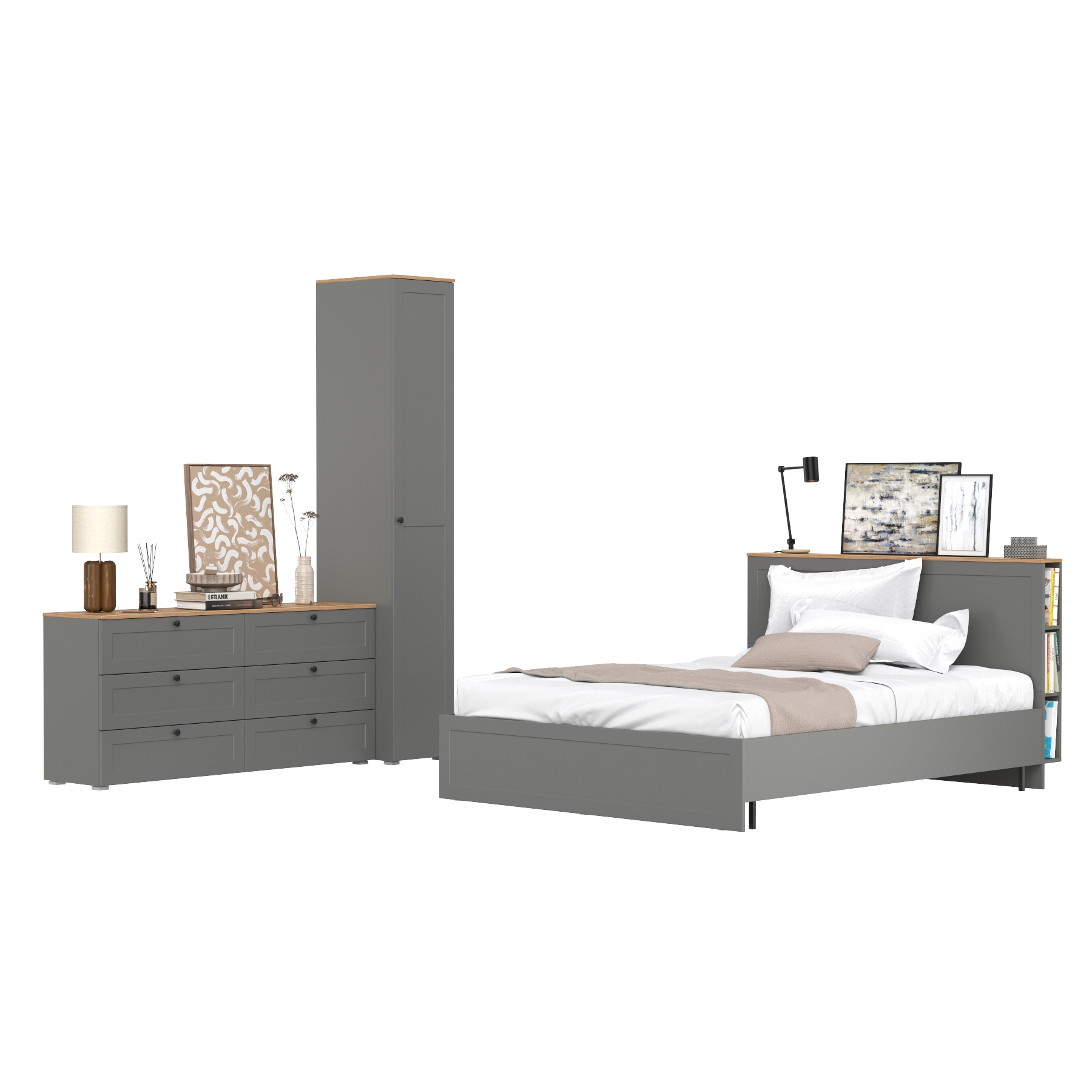 Отзывы о Столплит Бельевой шкаф-пенал Остин с кроватью с основанием и комодом на 6-ть ящиков Крафт золотой/Серый