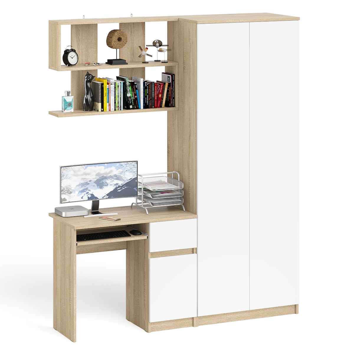 Отзывы о Столплит Компьютерный стол однотумбовый правый с ящиком и верхней полкой и платяной шкаф Мори МШ8001 Дуб Сонома, Белый
