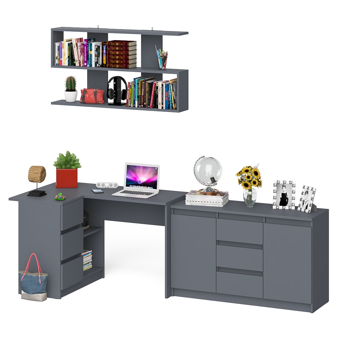 Выполнено в 5 цветах: белый, графит, графит/белый, дуб сонома и дуб сонома/белый.