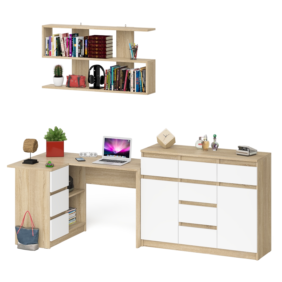 Выполнено в 5 цветах: белый, графит, графит/белый, дуб сонома и дуб сонома/белый.