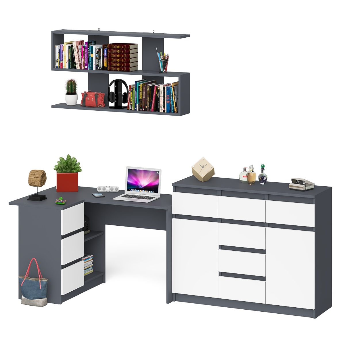 Выполнено в 5 цветах: белый, графит, графит/белый, дуб сонома и дуб сонома/белый.