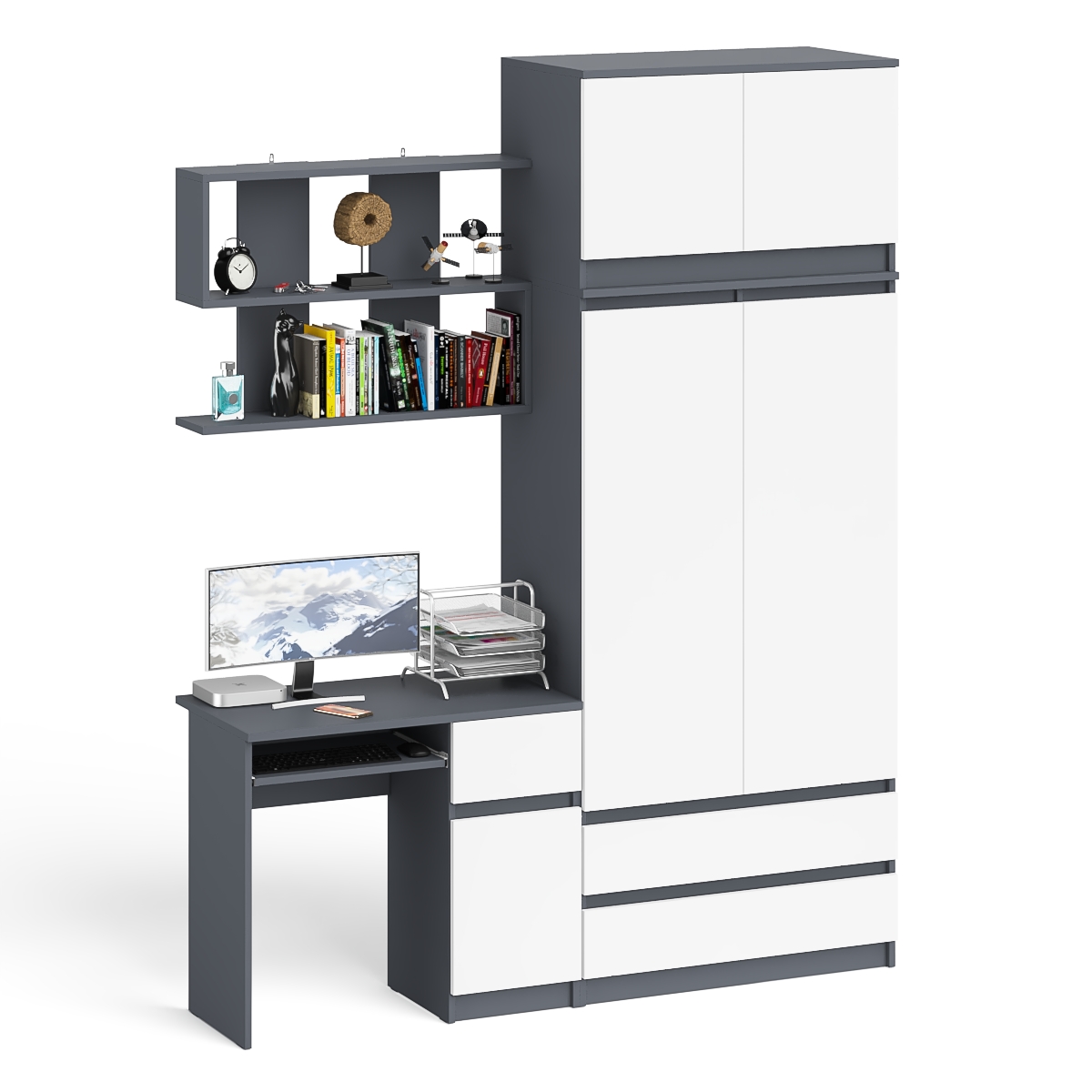 Отзывы о Столплит Шкаф с антресолью Мори МА900.1 с компьютерным столом МС-1 правым и книжной полкой Графит/Белый