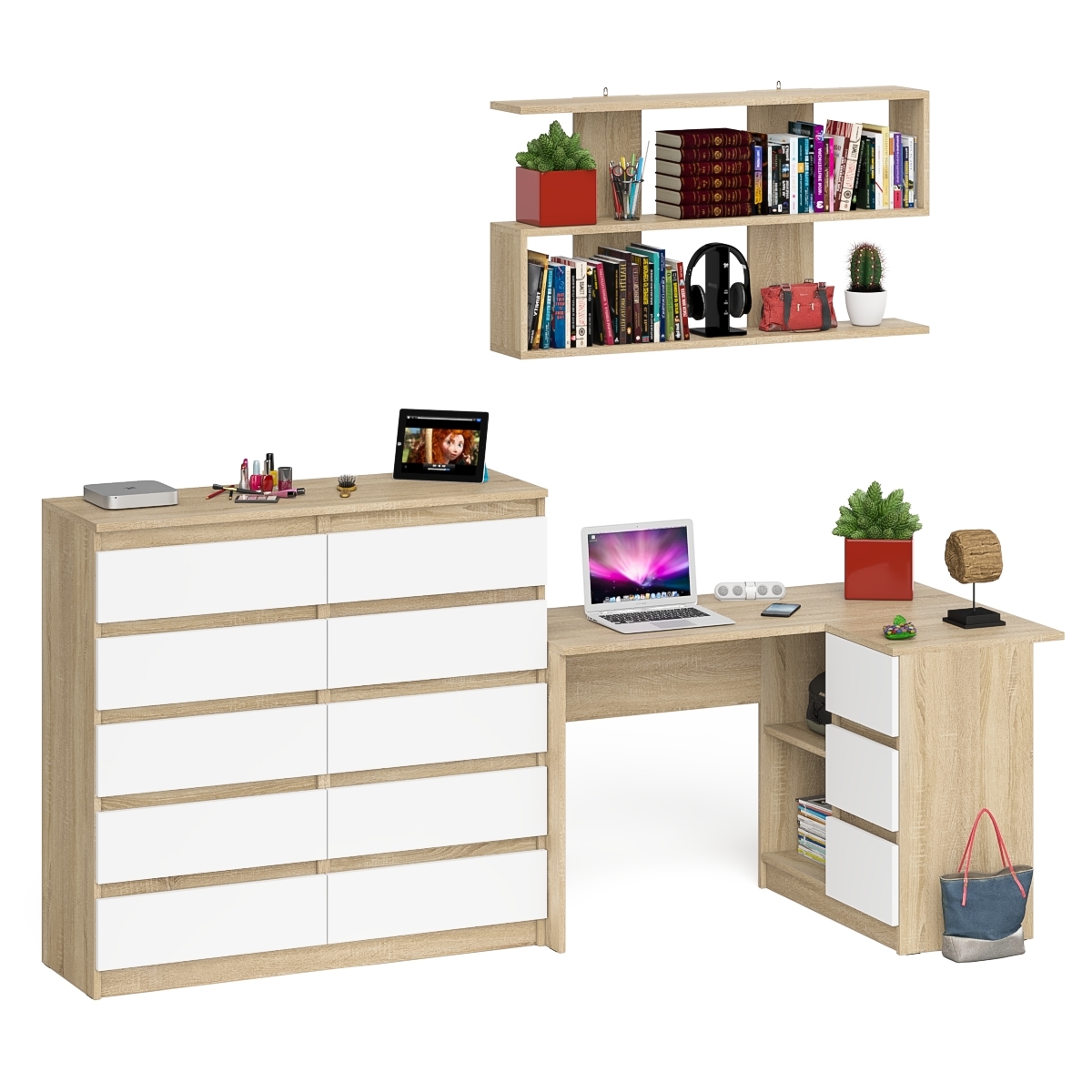 Отзывы о Столплит Набор мебели из углового компьютерного стола Мори МС-16 правого с книжной полкой и комода МК1200.10 Дуб Сонома, Белый