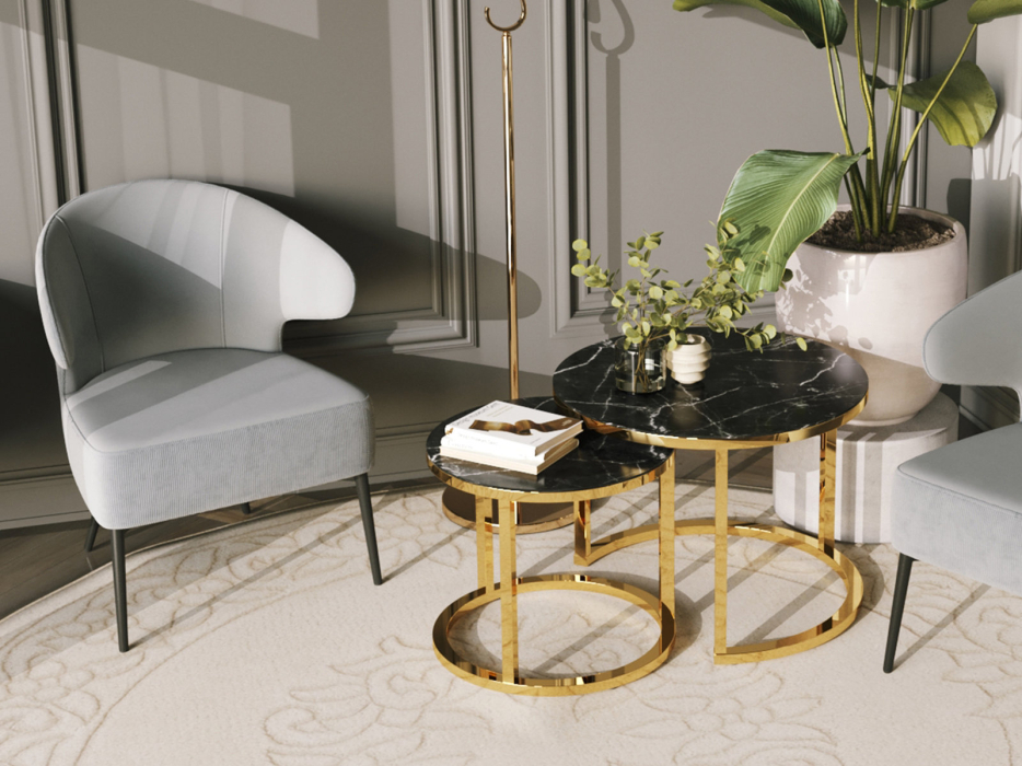 Набор журнальных столиков STOOL GROUP Селена 60 и 45 см (Черный Мрамор)