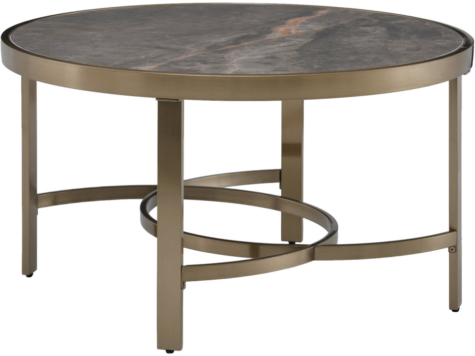 Журнальный столик Адриана — это воплощение утончённой роскоши и современного стиля. Столешница с изысканным рисунком под керамику гармонично сочетается с металлическим основанием. Геометрически выверенная опора с перекрёстными металлическими дугами в основании придаёт дополнительную устойчивость и дизайнерскую выразительность. Такое решение делает столик выразительным акцентом в любом интерьере.