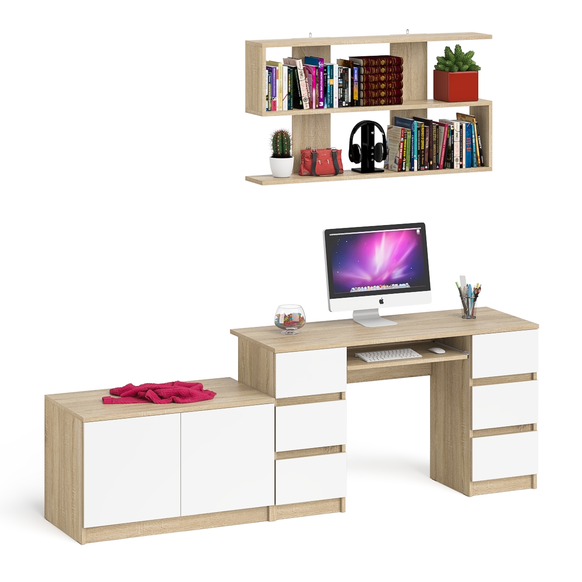 Отзывы о Столплит Стол компьютерный Мори МС-2 с верхней полкой и тумбой МА900.1 Дуб Сонома, Белый