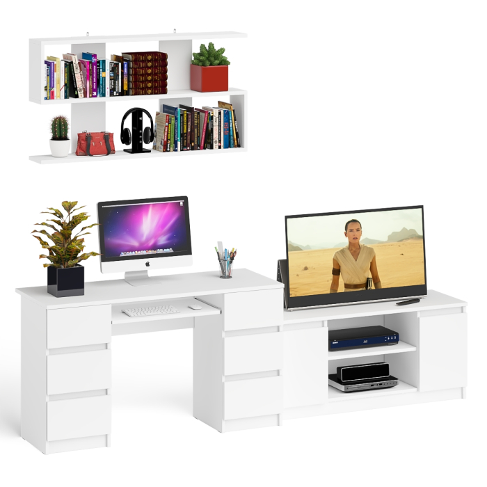 Отзывы о Столплит Письменный стол Мори МС-2 с ТВ-тумбой 1200 и навесной полкой 1200 Белый
