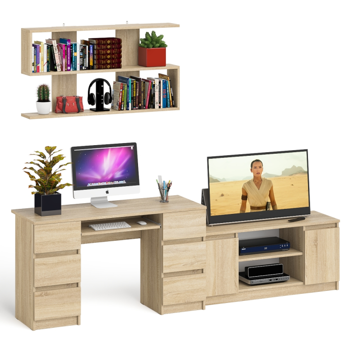 Отзывы о Столплит Письменный стол Мори МС-2 с ТВ-тумбой 1200 и навесной полкой 1200 Дуб сонома