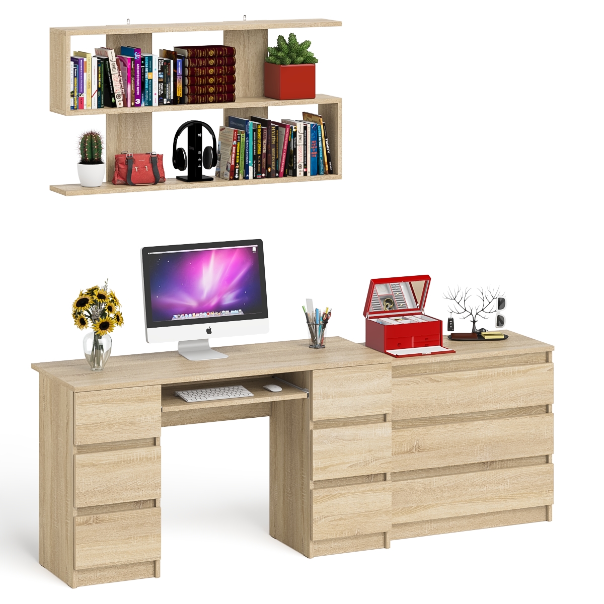 Отзывы о Столплит Комод Мори три ящика МК-800 и стол компьютерный Мори МС-2 с полкой 1200 Дуб сонома