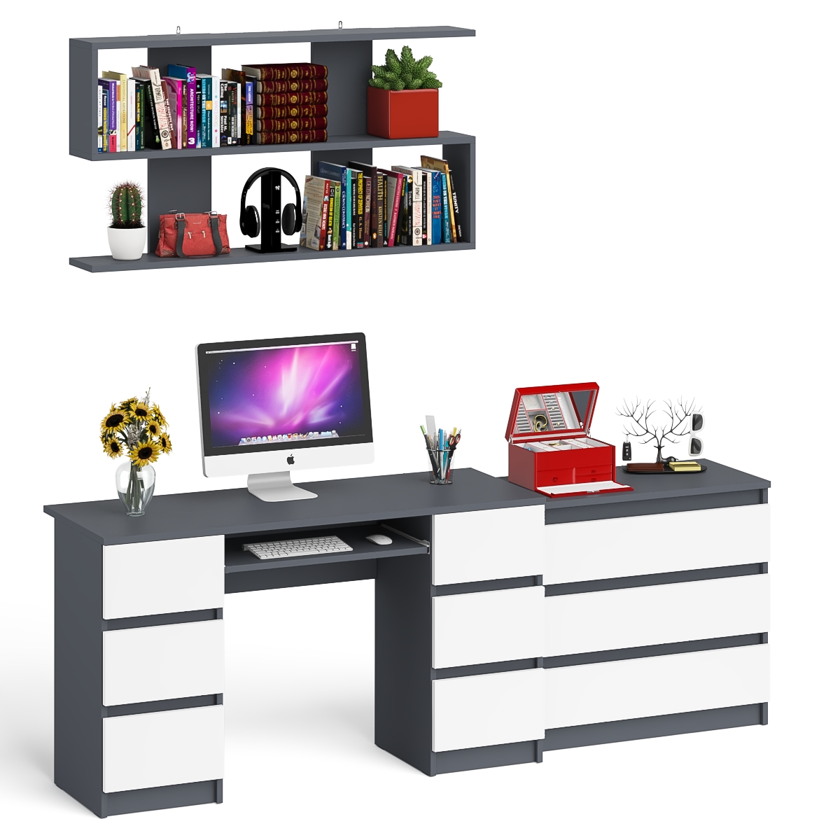 Отзывы о Столплит Комод Мори три ящика МК-800 и стол компьютерный Мори МС-2 с полкой 1200 Графит/Белый