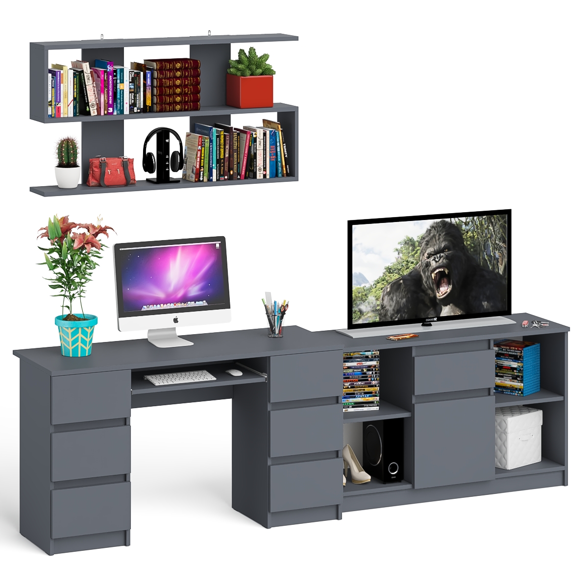 Отзывы о Столплит Стол письменный двухтумбовый Мори МС-2 с навесной открытой полкой и тумбой под ТВ Графит