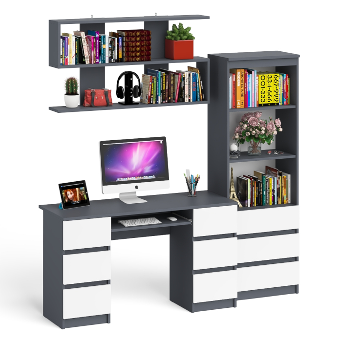 Отзывы о Столплит Рабочее место Мори из стола двухтумбового МС-2 с навесной полкой и стеллажом Графит/Белый