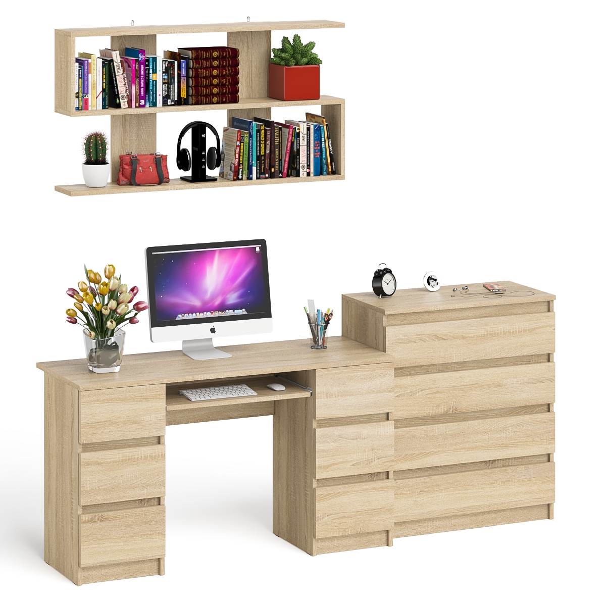 Отзывы о Столплит Стол письменный Мори МС-2 с комодом МК800 4 ящика и полкой 1200 Дуб сонома