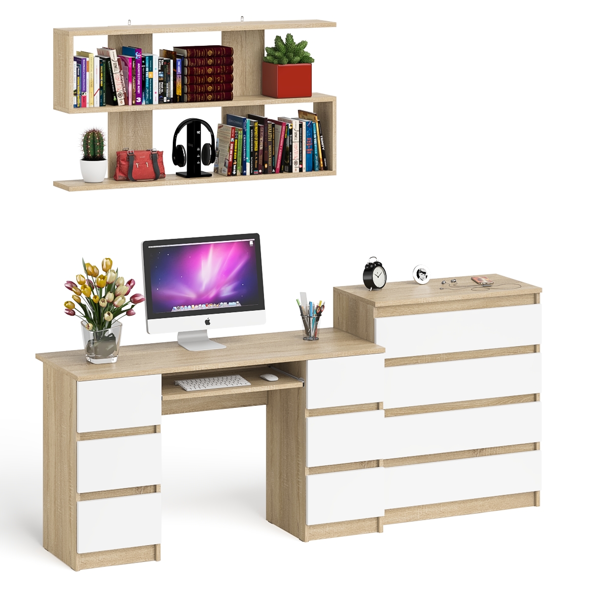 Отзывы о Столплит Стол письменный Мори МС-2 с комодом МК800 4 ящика и полкой 1200 Дуб Сонома, Белый