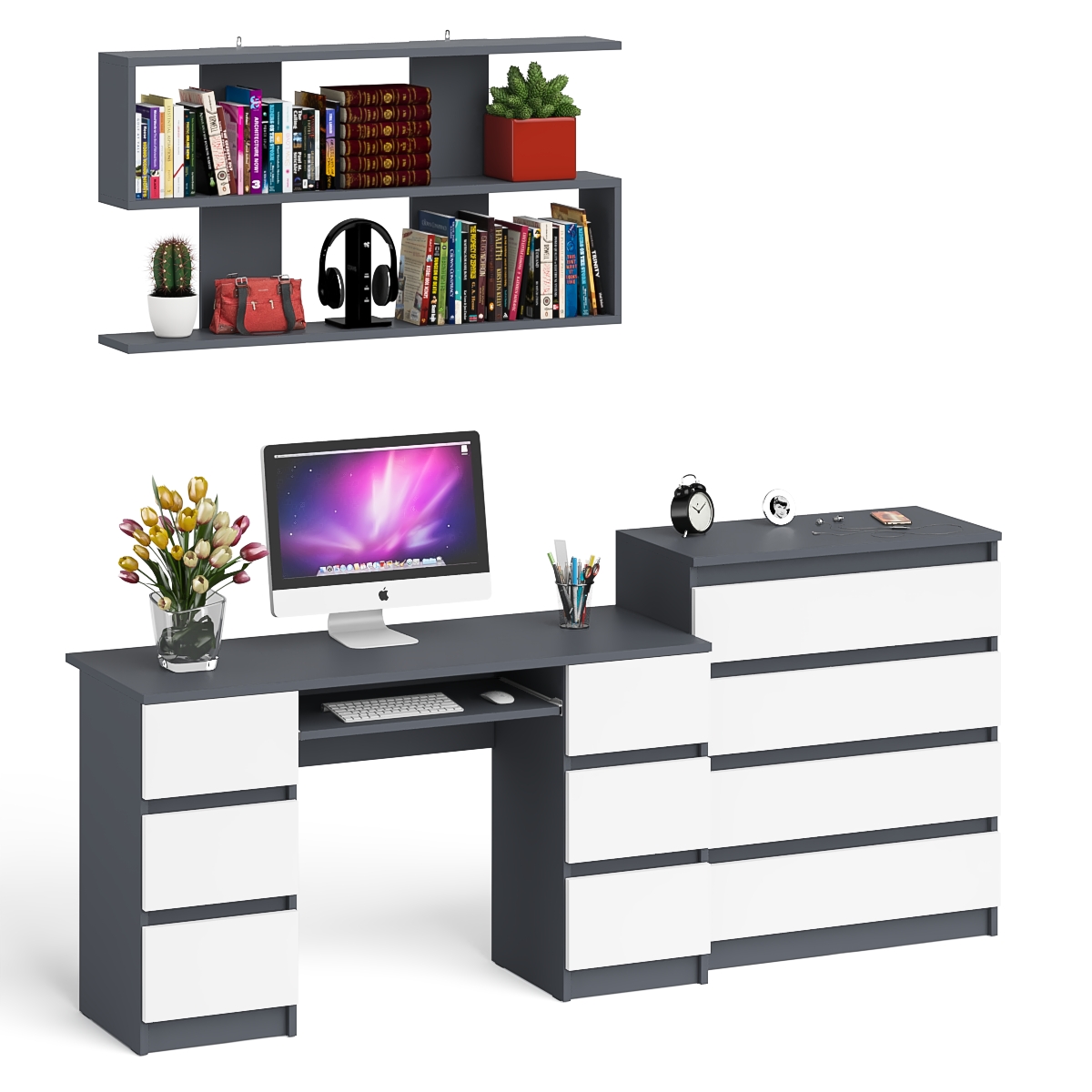 Отзывы о Столплит Стол письменный Мори МС-2 с комодом МК800 4 ящика и полкой 1200 Графит/Белый