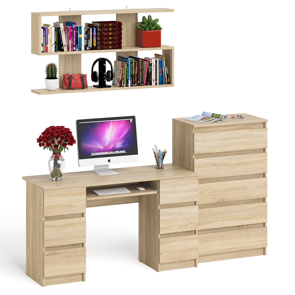 Отзывы о Столплит Стол для работы МС-2 с высоким комодом на пять ящиков и навесной полкой Мори Дуб сонома