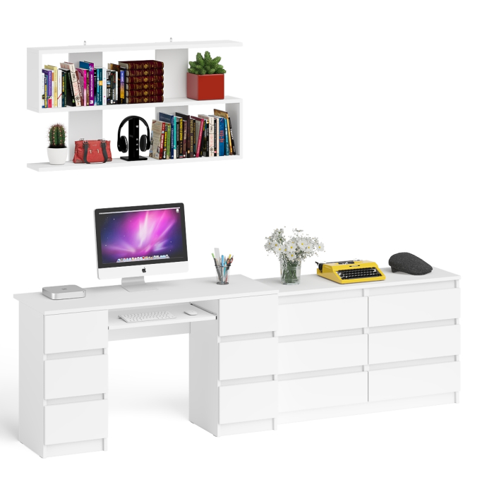 Отзывы о Столплит Широкий комод Мори на шесть ящиков с двутумбовым столом МС-2 и открытой полкой Белый