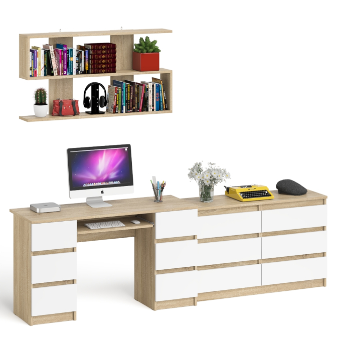 Отзывы о Столплит Широкий комод Мори на шесть ящиков с двутумбовым столом МС-2 и открытой полкой Дуб Сонома, Белый