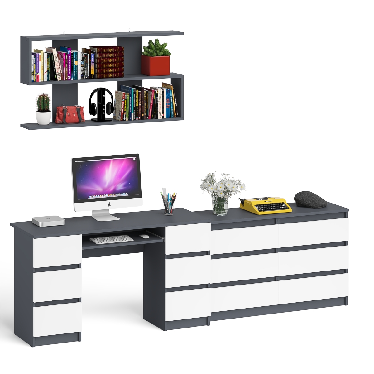 Отзывы о Столплит Широкий комод Мори на шесть ящиков с двутумбовым столом МС-2 и открытой полкой Графит/Белый
