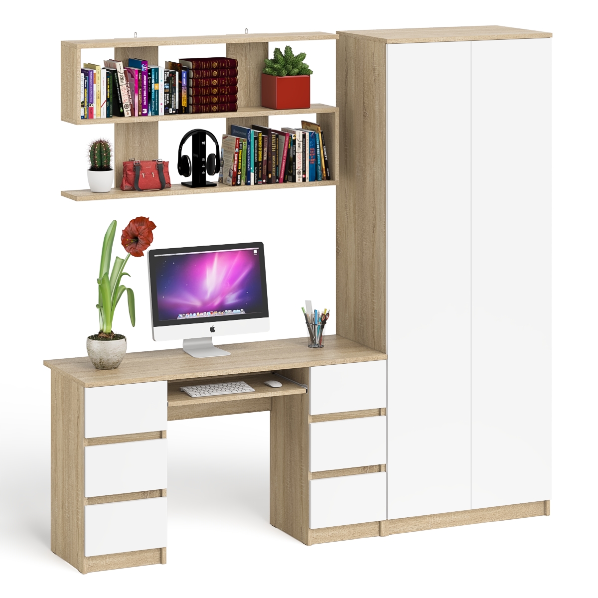 Отзывы о Столплит Платяной шкаф две двери Мори МШ800.1 с компьютерным столом и полкой навесной Дуб Сонома, Белый