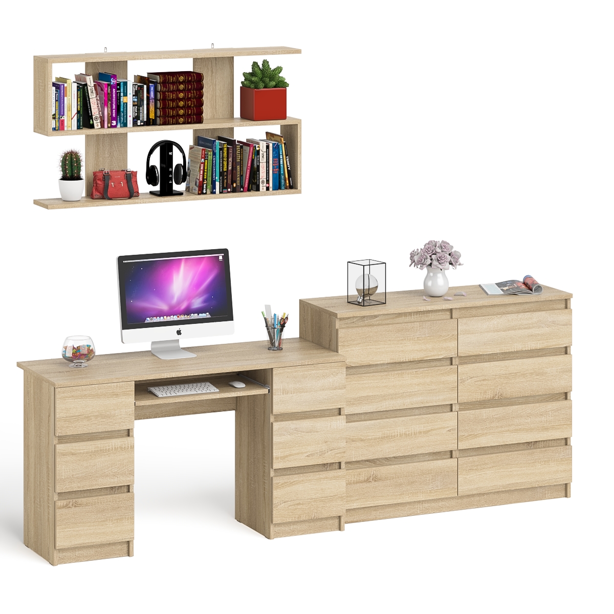 Отзывы о Столплит Полка Мори 1200 с письменным столом Мори МС-2 и комодом на восемь ящиков Дуб сонома