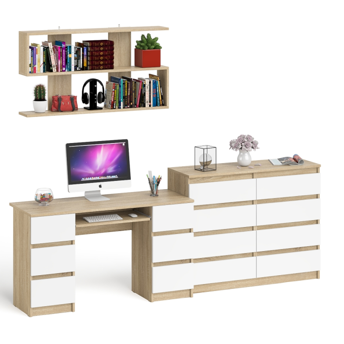Отзывы о Столплит Полка Мори 1200 с письменным столом Мори МС-2 и комодом на восемь ящиков Дуб Сонома, Белый