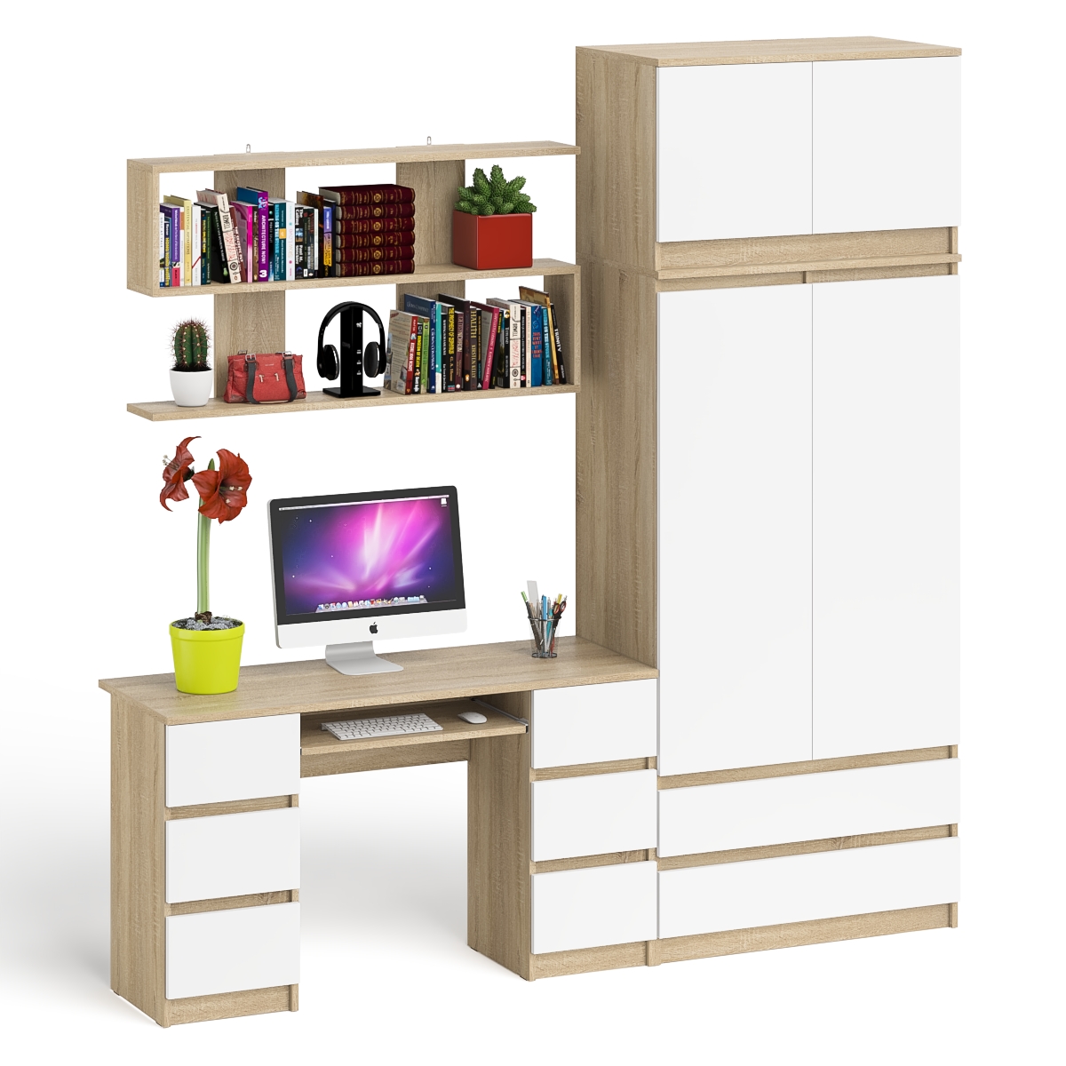 Выполнено в 5 цветах: белый, графит, графит/белый, дуб сонома и дуб сонома/белый.