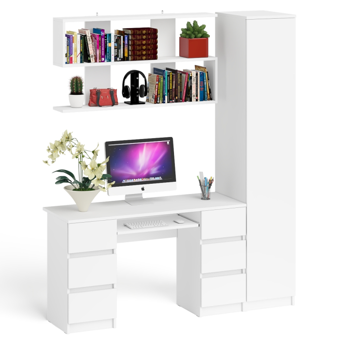Отзывы о Столплит Компьютерный стол МС-2 с верхней полкой и пеналом для вещей Мори Белый