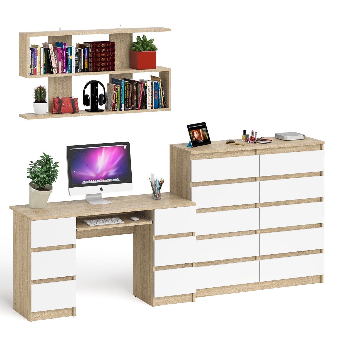 Отзывы о Столплит Комод Мори МК1200.10 со столом компьютерно-письменным и полкой сверху Дуб Сонома, Белый