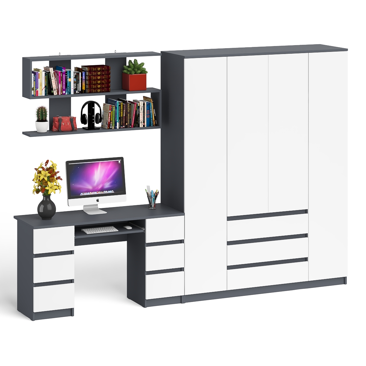 Отзывы о Столплит Большой 4-х дверный шкаф-комод Мори МШ1600.1 и стол с верхней навесной полкой Графит/Белый