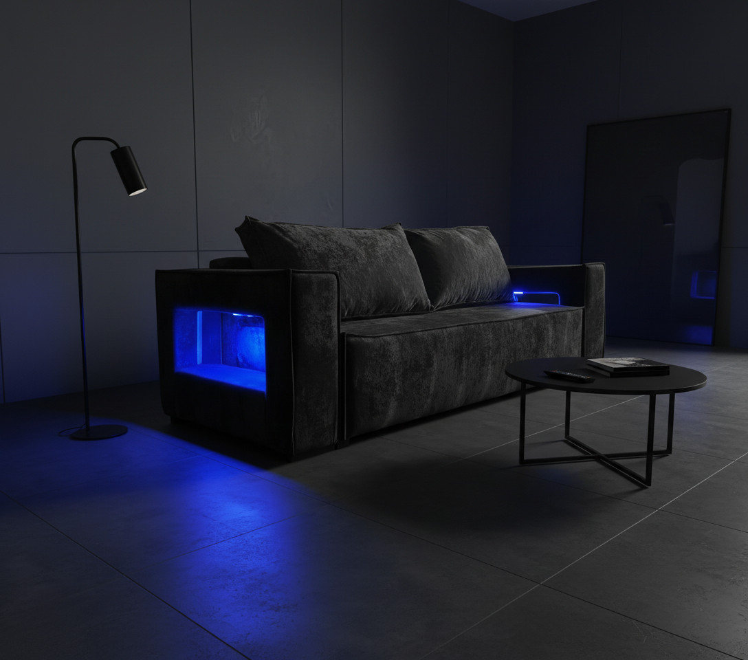 Отзывы о Столплит Диван-кровать еврокнижка Лофт Люкс с подсветкой , 140,плюш Велюр черный