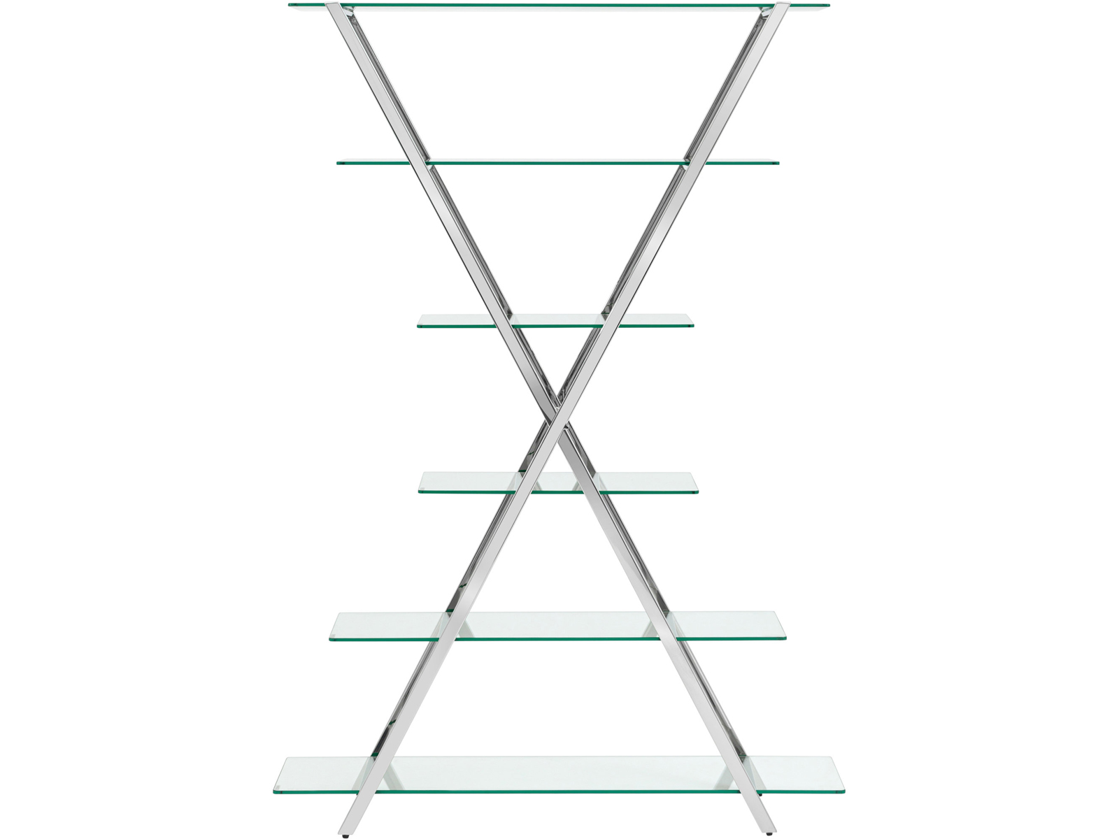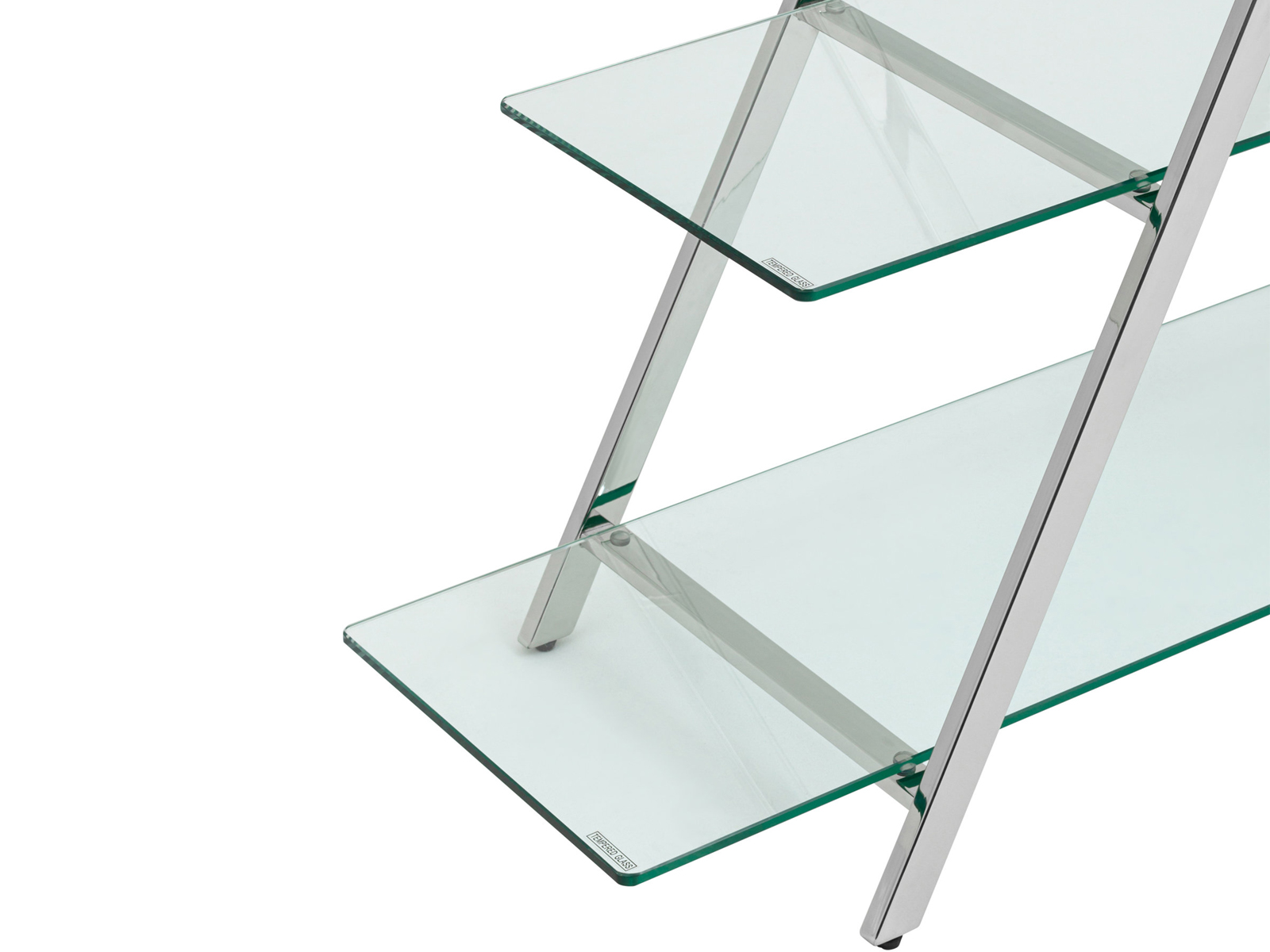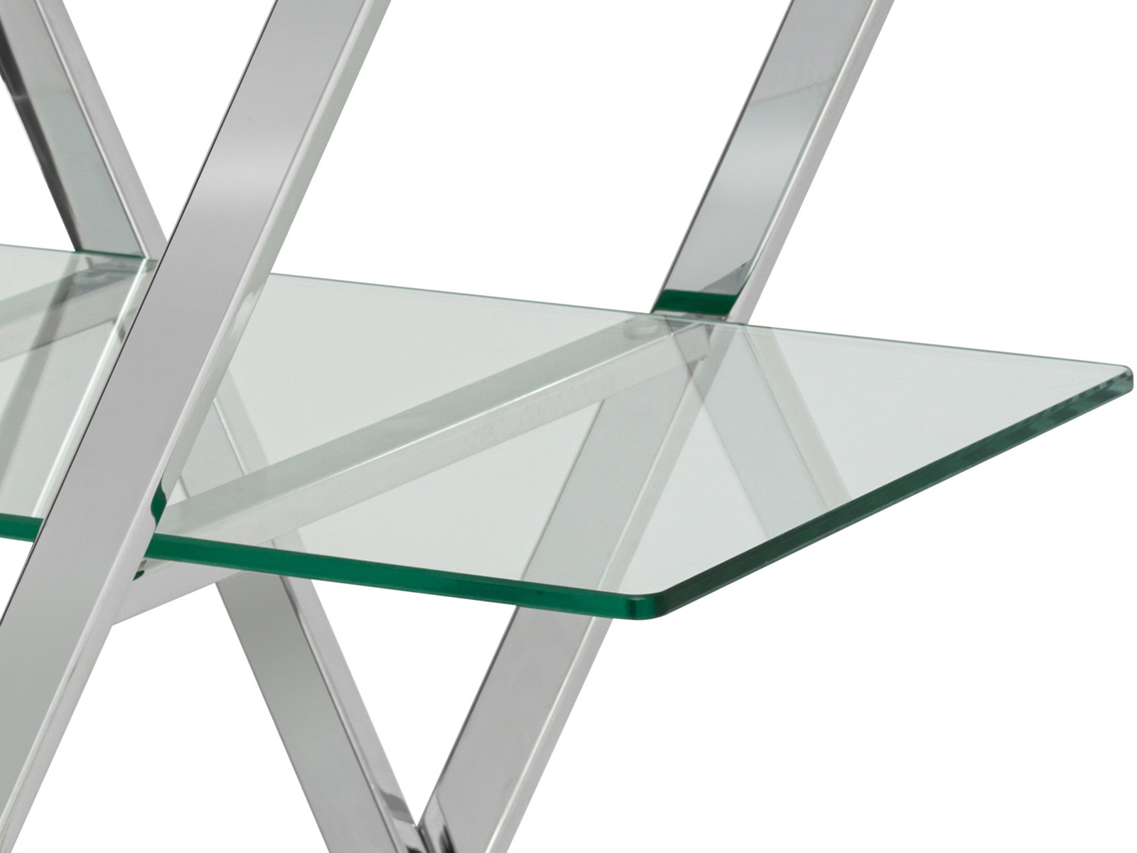 Стеллаж Гейт внесет особый стильный акцент в пространство современного интерьера. Оригинальная открытая конструкция стального каркаса мгновенно притягивает взгляд и оживляет обстановку. На стеклянных полках можно хранить необходимые, часто используемые вещи, предметы декора создадут дополнительный уют.
