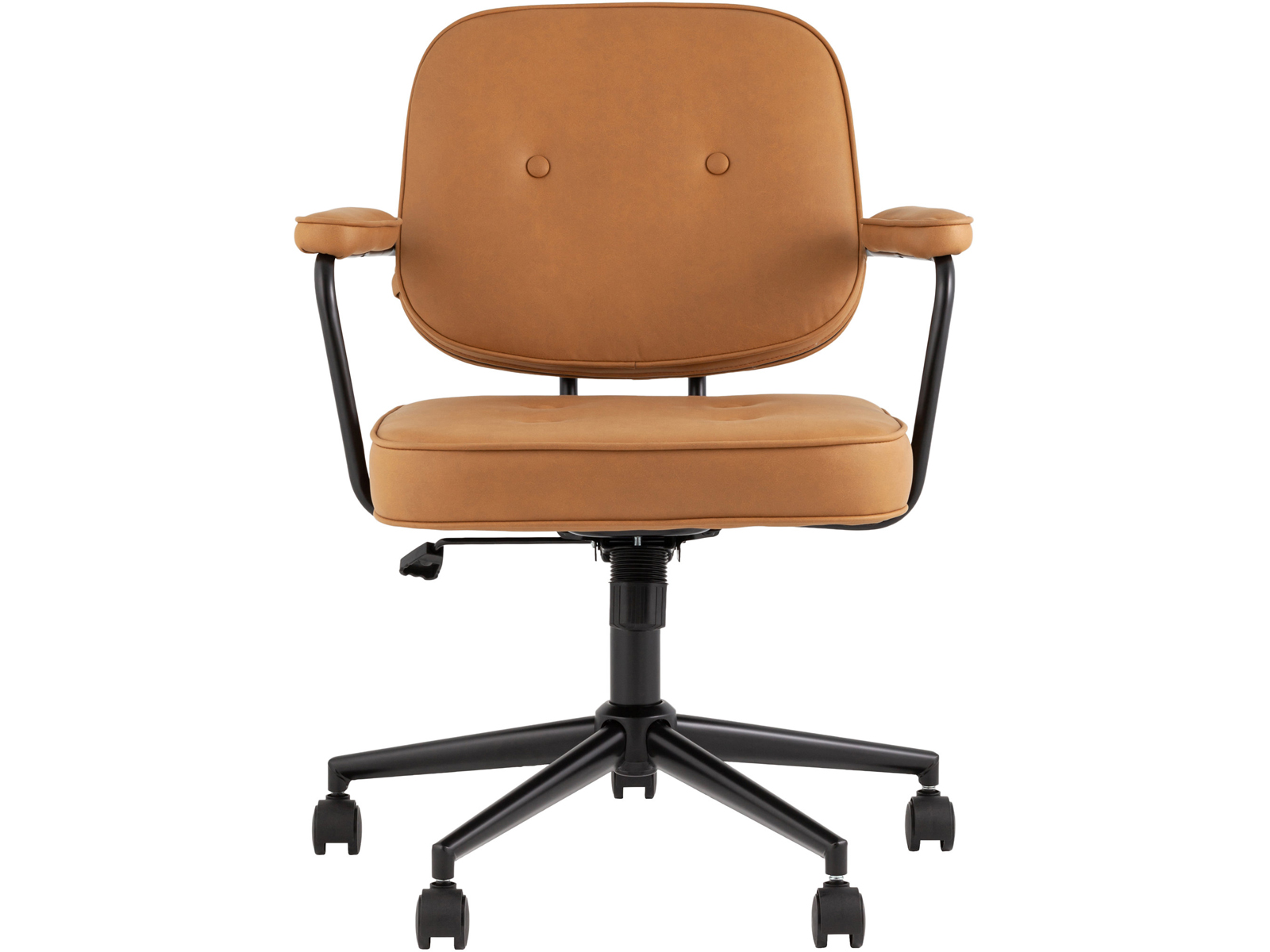 Уютное и стильное офисное кресло в обивке из экокожи. Комфорта добавляют удобные подлокотники, а благодаря механизму регулировки высоты можно выбрать удобное положение.