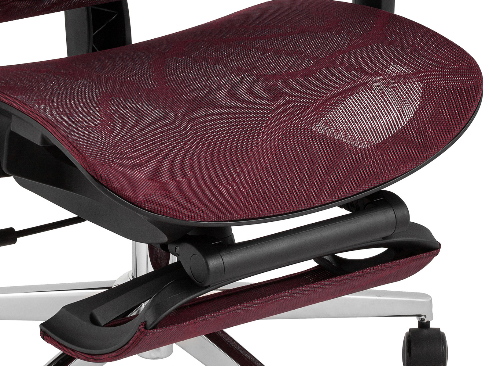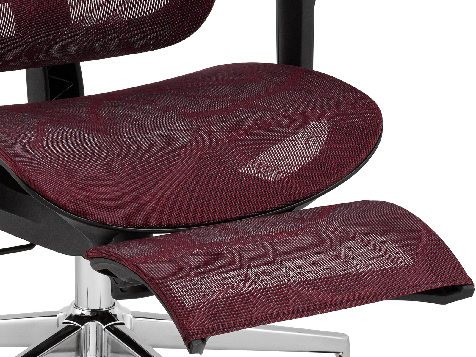Кресло оснащено подголовником с возможностью регулировки, эргономичной высокой спинкой и 3D-подлокотниками — с изменением высоты, глубины и ширины. Благодаря синхромеханизму с мультиблоком можно зафиксировать удобное положение и обеспечить оптимальную поддержку спины. Газлифт 3 класса позволяет плавно регулировать высоту сиденья от 45 до 53 см. Встроенная выдвижная оттоманка обеспечивает дополнительный комфорт и позволяет удобно расположить ноги во время перерыва. Максимальная нагрузка — 120 кг.