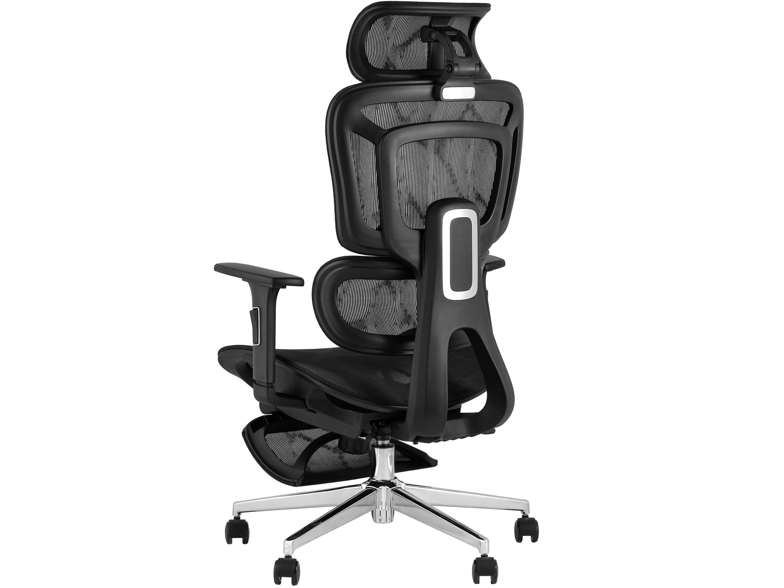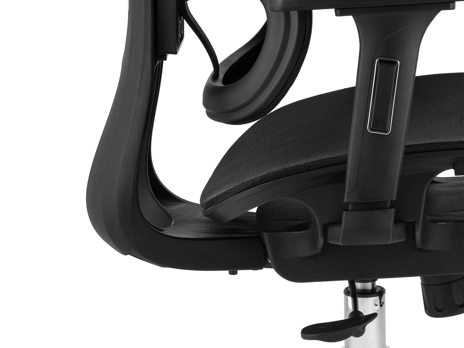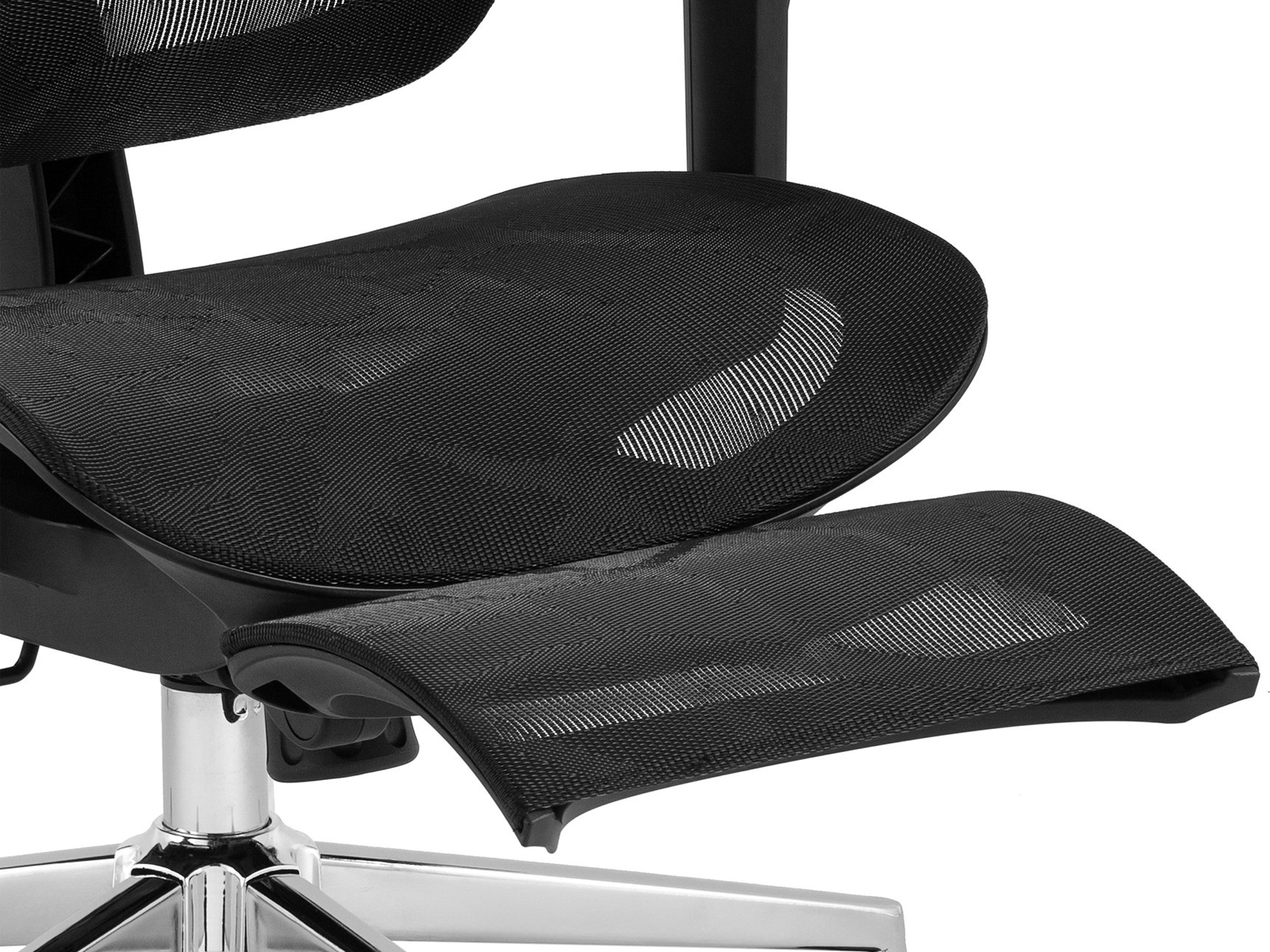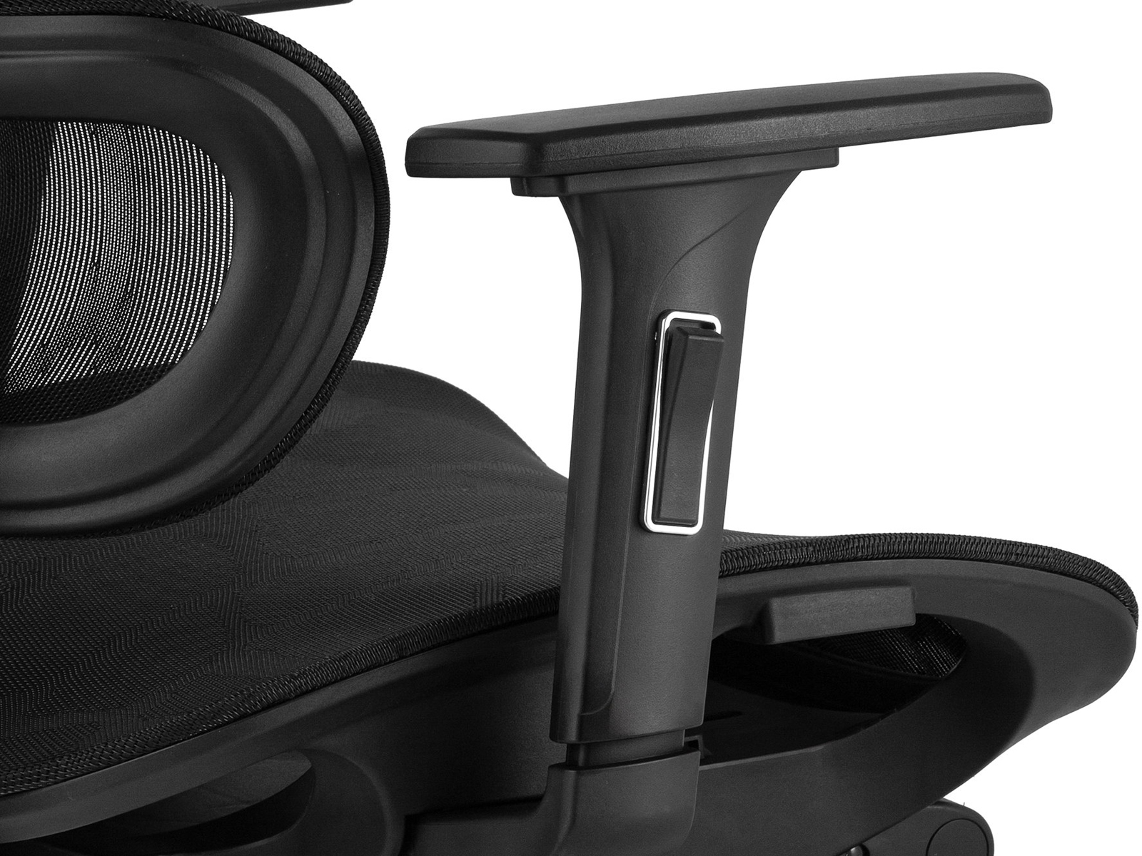 Кресло оснащено подголовником с возможностью регулировки, эргономичной высокой спинкой и 3D-подлокотниками — с изменением высоты, глубины и ширины. Благодаря синхромеханизму с мультиблоком можно зафиксировать удобное положение и обеспечить оптимальную поддержку спины. Газлифт 3 класса позволяет плавно регулировать высоту сиденья от 45 до 53 см. Встроенная выдвижная оттоманка обеспечивает дополнительный комфорт и позволяет удобно расположить ноги во время перерыва. Максимальная нагрузка — 120 кг.