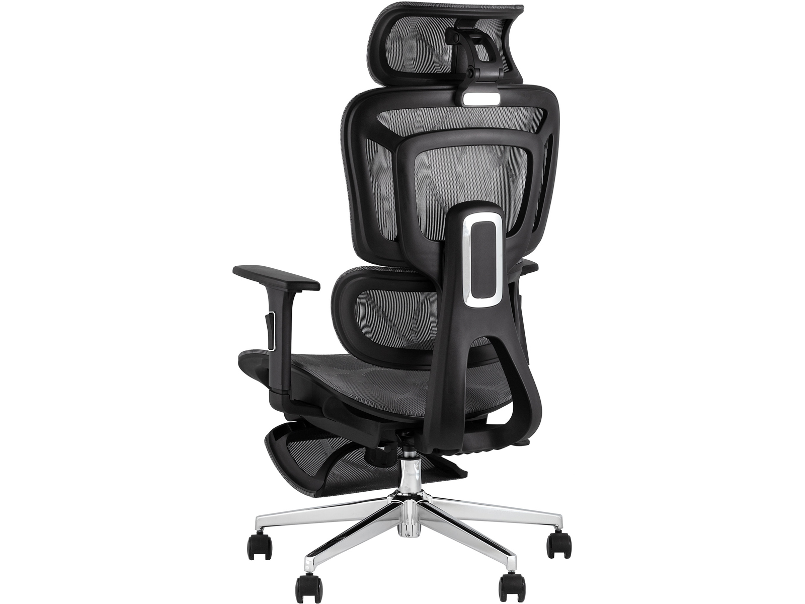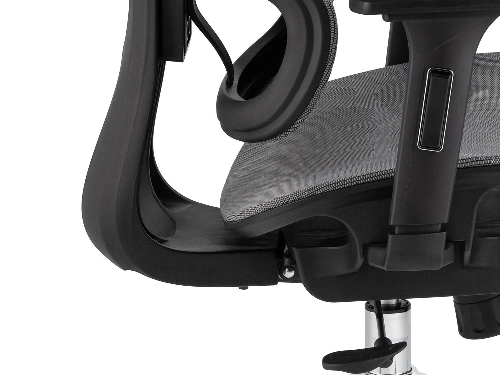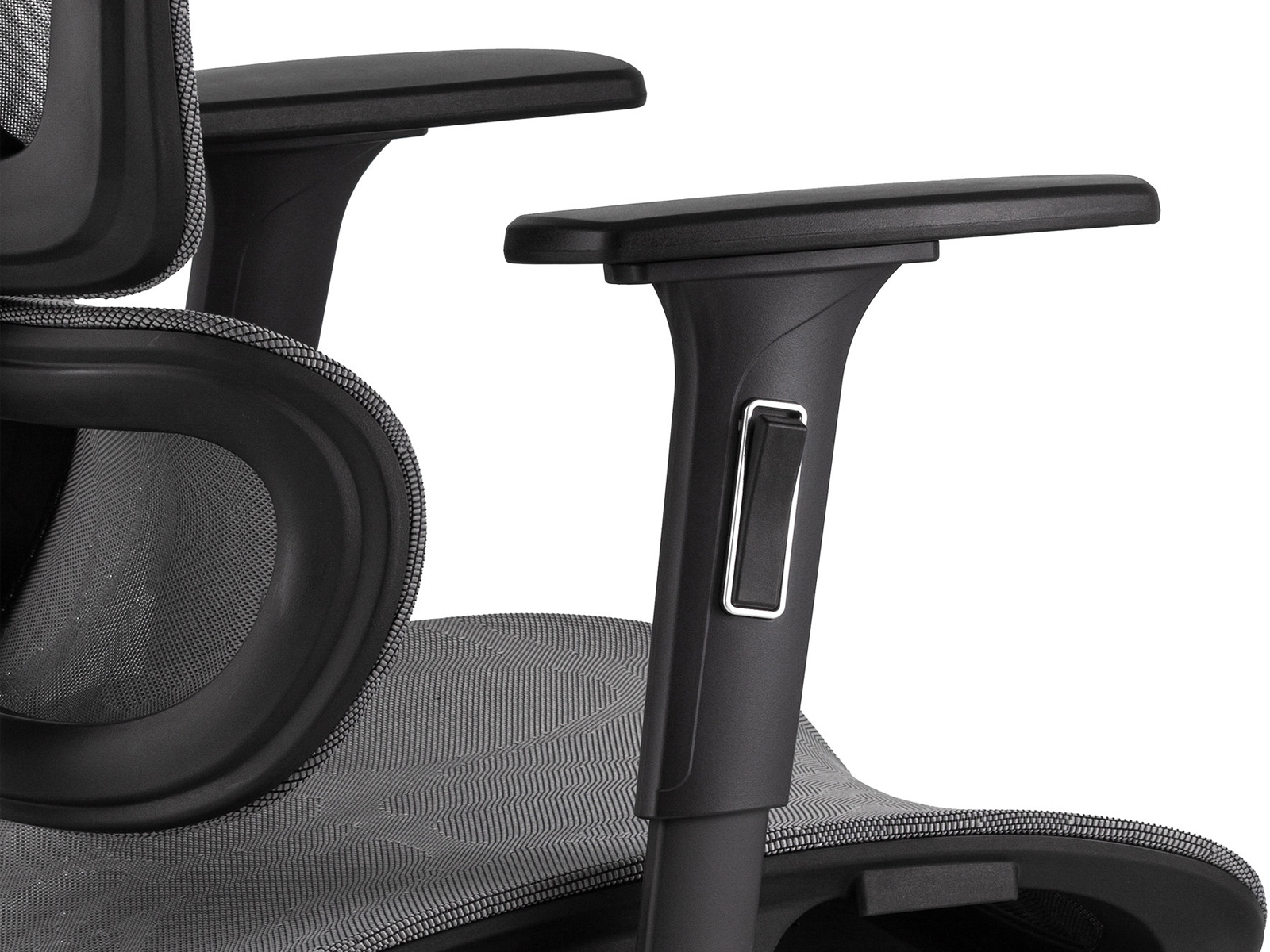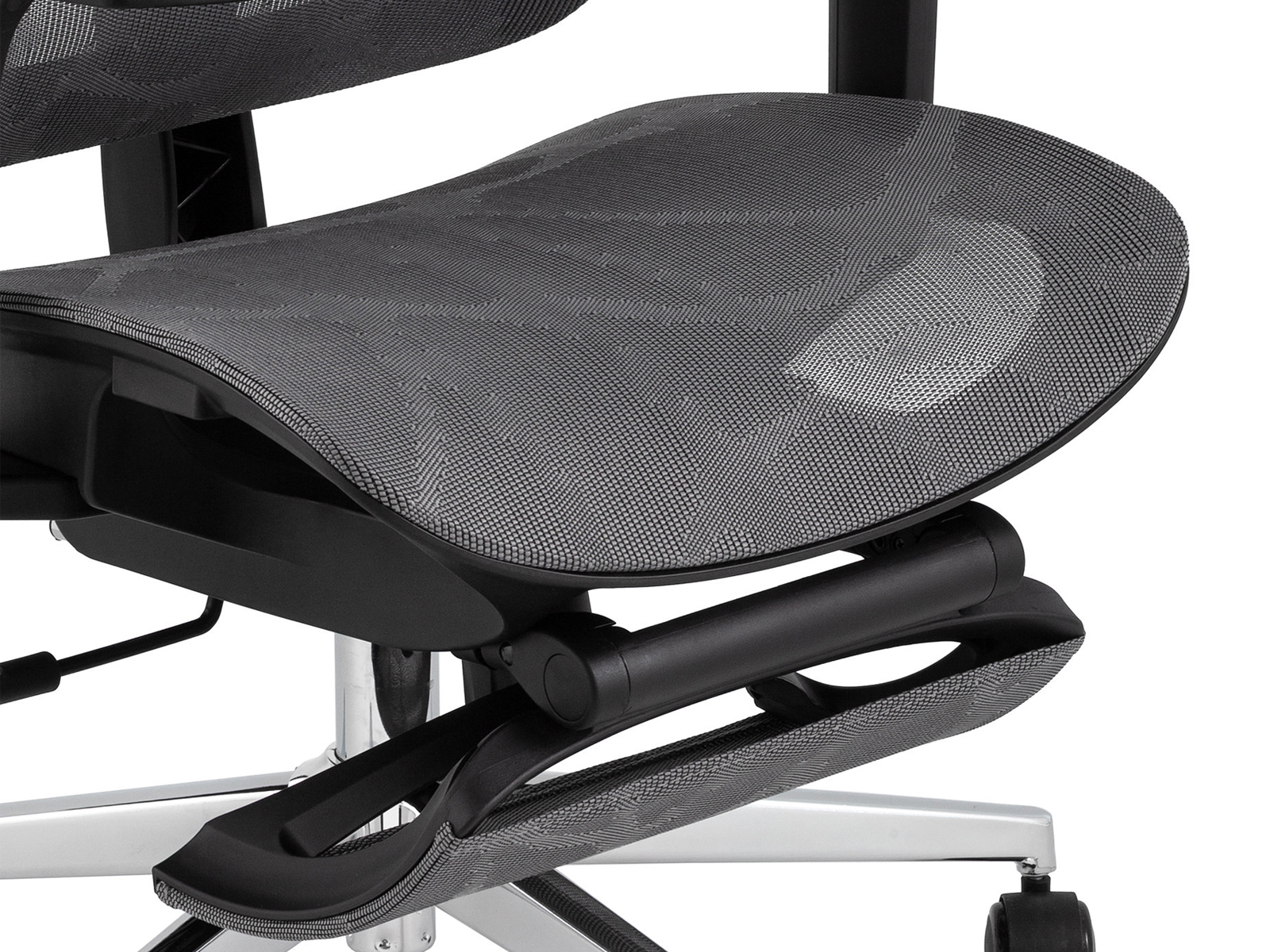 Кресло оснащено подголовником с возможностью регулировки, эргономичной высокой спинкой и 3D-подлокотниками — с изменением высоты, глубины и ширины. Благодаря синхромеханизму с мультиблоком можно зафиксировать удобное положение и обеспечить оптимальную поддержку спины. Газлифт 3 класса позволяет плавно регулировать высоту сиденья от 45 до 53 см. Встроенная выдвижная оттоманка обеспечивает дополнительный комфорт и позволяет удобно расположить ноги во время перерыва. Максимальная нагрузка — 120 кг.