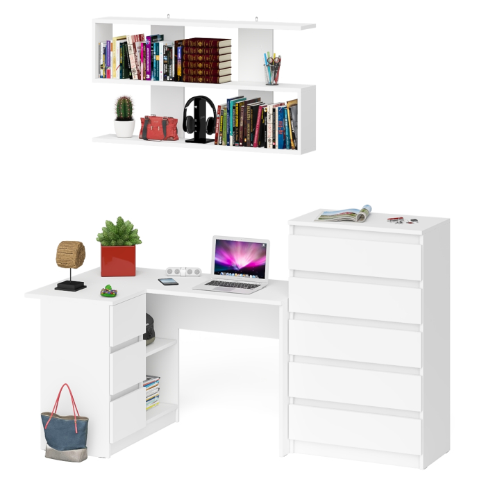 Отзывы о Столплит Угловой компьютерный стол Мори МС-16 левый с навесной полкой и высоким комодом на 5-ть ящиков Белый