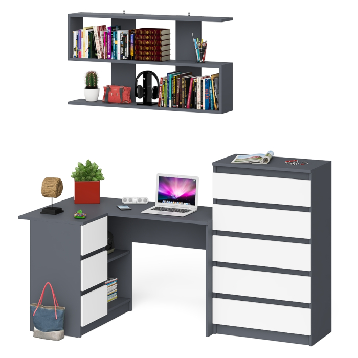 Отзывы о Столплит Угловой компьютерный стол Мори МС-16 левый с навесной полкой и высоким комодом на 5-ть ящиков Графит/Белый