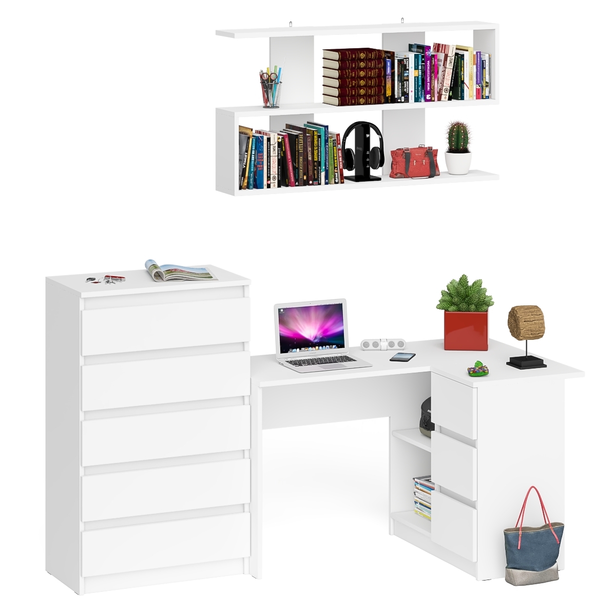 Отзывы о Столплит Комод Мори МК700.5 со столом компьютерным угловым МС-16 правым и открытой полкой 1200 Белый
