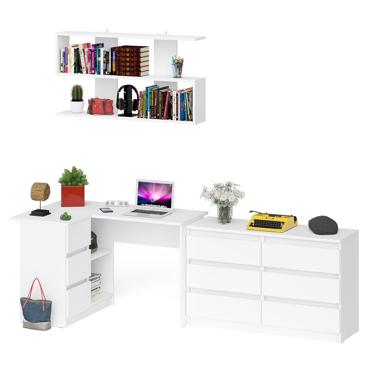 Стол компьютерный угловой МС-16 левый Мори с полкой для книг и широким комодом - минималистичный дизайн и доступная цена позволяет наслаждаться качественной и современной мебелью без значительных финансовых затрат! Комплектация включает угловой компьютерный стол Мори МС-16 левый, широкий комод шесть ящиков Мори МК1200.6 и навесную полку Плк-1200.