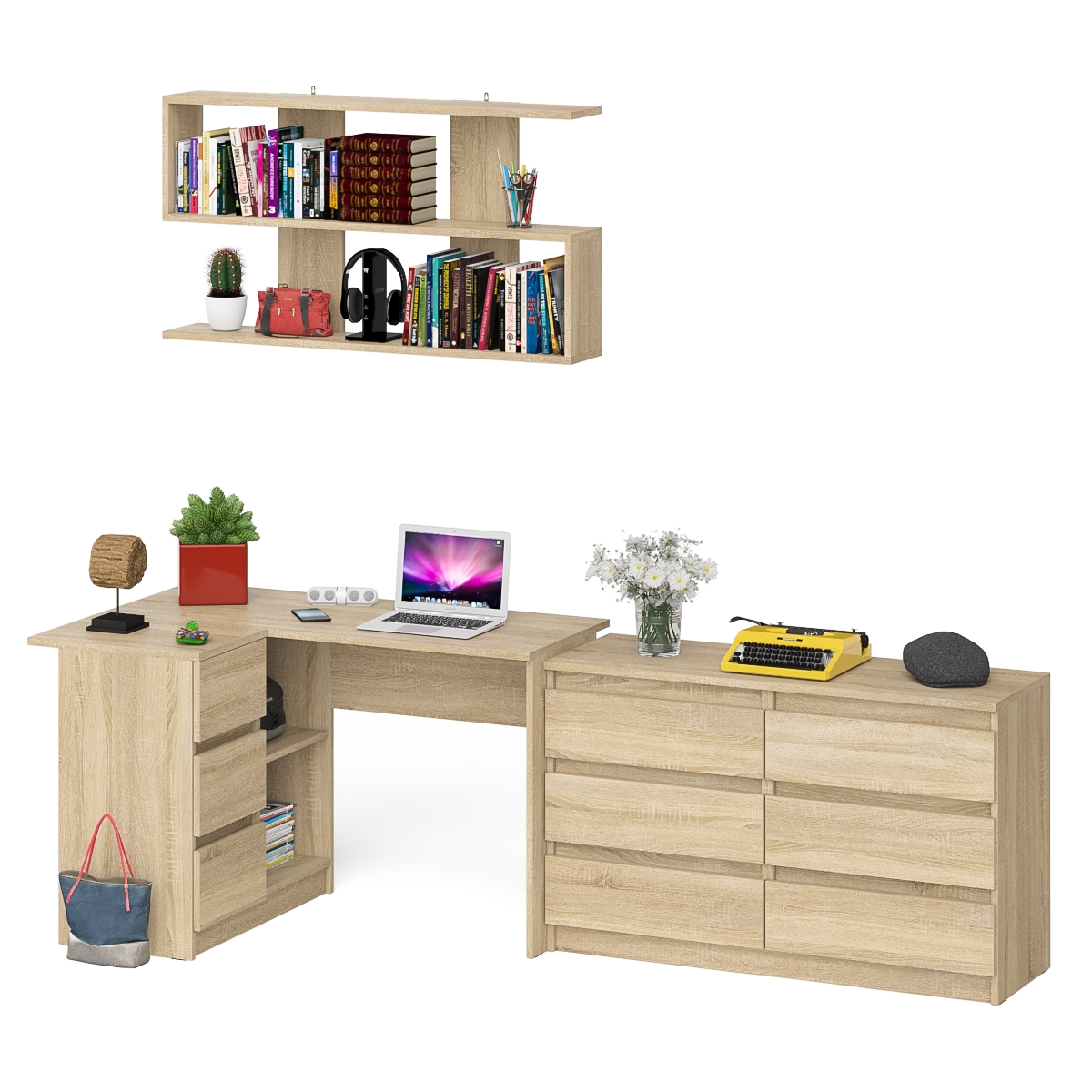 Отзывы о Столплит Стол компьютерный угловой МС-16 левый Мори с полкой для книг и широким комодом Дуб сонома